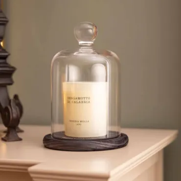 CAMPANA OLFATIVA DE CRISTAL CON BASE DE MADERA