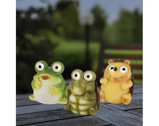 Figuras de animales solares hechas de poliresina. Luz blanco cálido. 3 modelos de animales. En caso de que quiera uno concreto, consultar disponibilidad. Medida 12x12cm