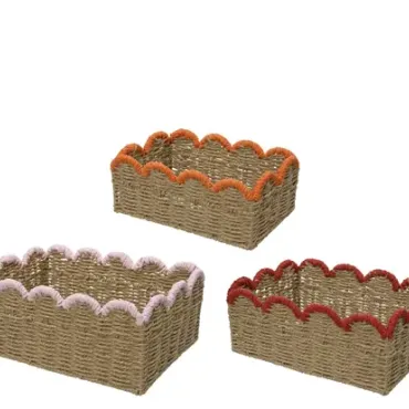 Bandeja hecha de cuerda de papel en formato rectangular con borde naranja. Medida 12cm alto x 20cm de ancho x 29cm de largo