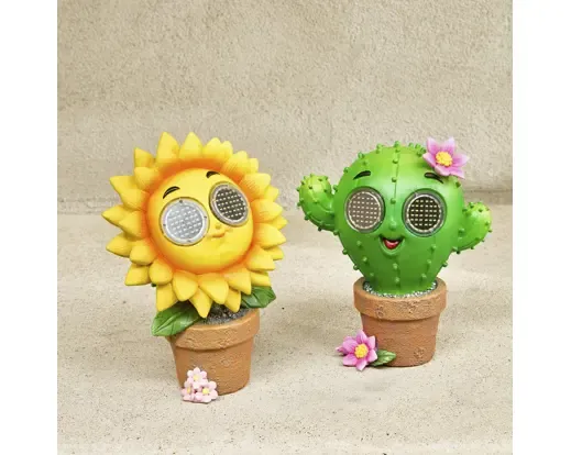 Lámpara solar para jardín. Material resina. Medida 19cm de alto x 16,5cm de ancho x 10,5cm de largo. Luz blanco frío