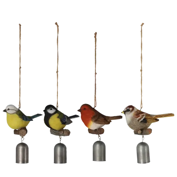 Campana pájaro decorativa. Este carillón de viento con motivos de pájaros trae la sinfonía de la naturaleza a tu jardín. Con sus hermosos detalles, captura a la perfección el encanto de las aves. Cada figurita cuelga con gracia del carillón, creando un espectáculo encantador que se mece con el viento. Cuélgalo una vez y disfrútalo durante años. Con cada brisa, recordarás la belleza que la naturaleza nos ofrece.