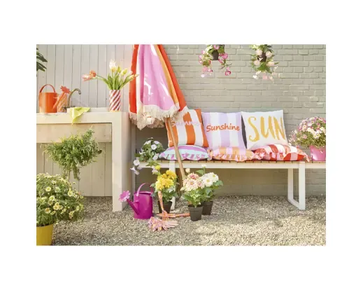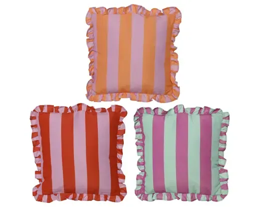 Cojín poliéster válido para uso exterior. Estampados de rayas con volantes. 3 modelos disponibles. Consultar disponibilidad en caso de modelo en concreto
