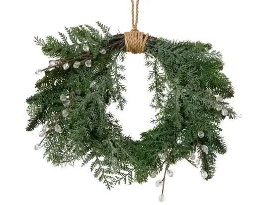 Corona navideña ramillete con cristales. Medida 40cm diámetro x 11cm ancho