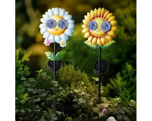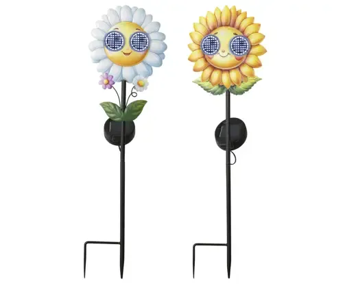 Estaca de jardín solar de girasoles. Dos modelos disponibles. Consultar disponibilidad en caso de querer modelo en concreto. Medida 78cm de altura x 14cm de ancho x 10,5cm de largo