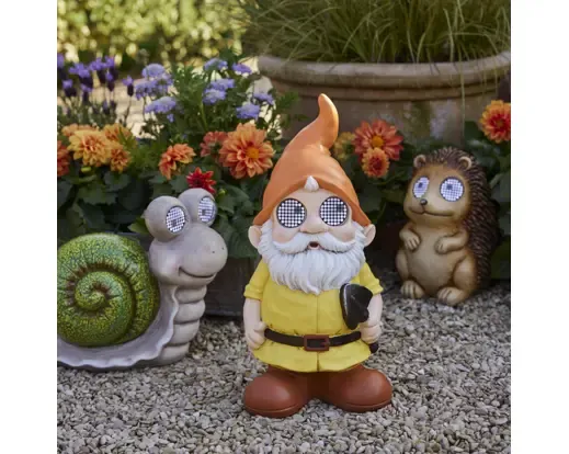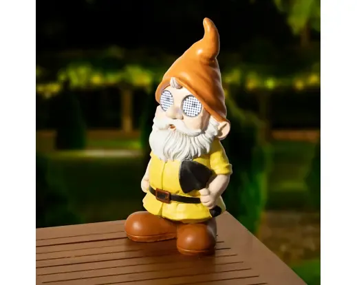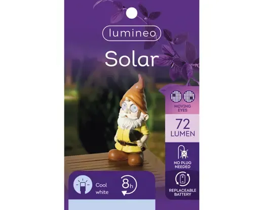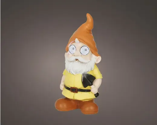 Gnomo solar para jardín hecho de poliéster. Medida 36,5cm de altura x 17,5cm de ancho x 15,5cm de largo