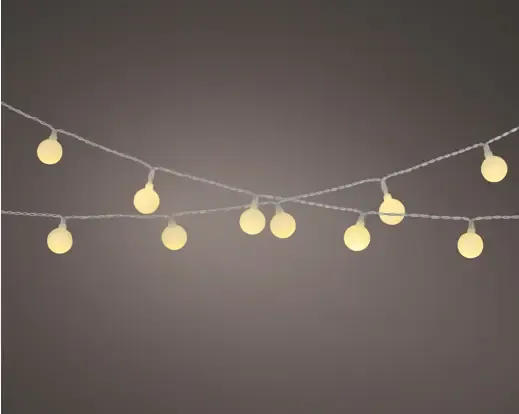 Guirnalda solar bolas cherry. Cable transparente, luz blanco cálido. Medida largo 2,90 metros. 30 luces
