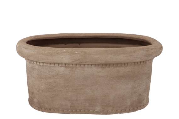 Jardinera hecha en fibra de color gris cemento. Modelo Florence. Medida 47cm de largo x26cm de ancho x 21cm de alto