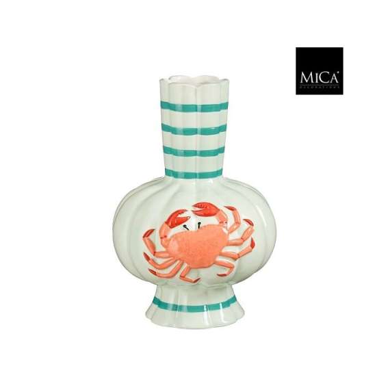 Jarrón de cerámica con cangrejo en relieve. Medida 29cm altura x 19cm de ancho x 20cm de largo