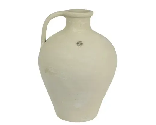 Jarron vaso de terracota con asa. Acabado natural crema. Hecho en Portugal. Válido para uso interior. Medida 37cm altura x 28cm de diámetro