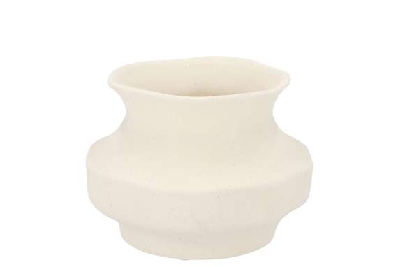 Jarrón hecho de cerámica con acabado en arena. Modelo Junia. Medida 14cm altura x 19x19cm