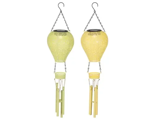 Balón solar de metal de color amarillo. Medida 56cm altura x 13cm de ancho