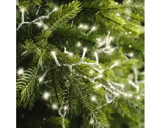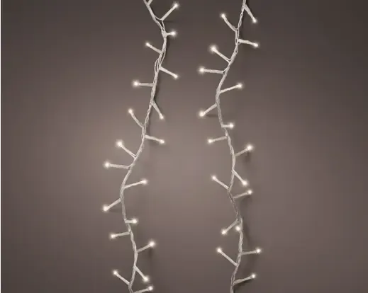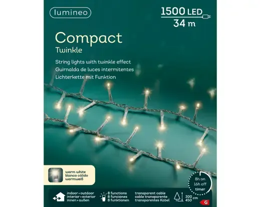 Luces de navidad con cable blanco/transparente y luz blanco cálida. 3400cm, 1500 luces, 8 funciones y válidas para uso exterior