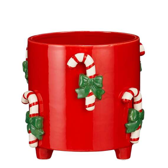 Maceta de cerámica roja con caramelos. Medida 18cm altura x 21cm de diámetro