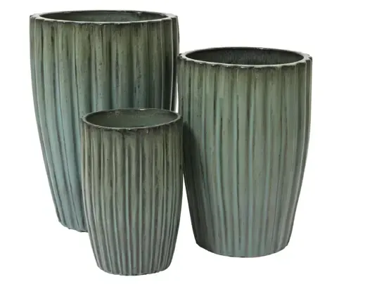 Maceta de gres esmaltada en color verde agua. Válida para uso interior (tapón) o exterior. Medida 68cm altura x 46cm ancho