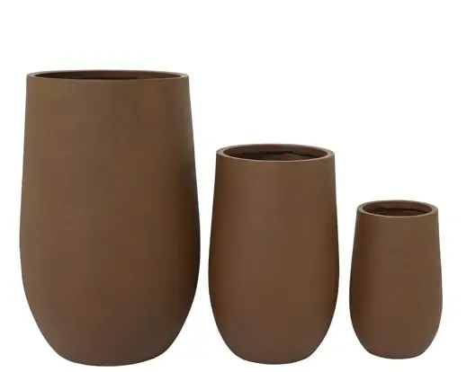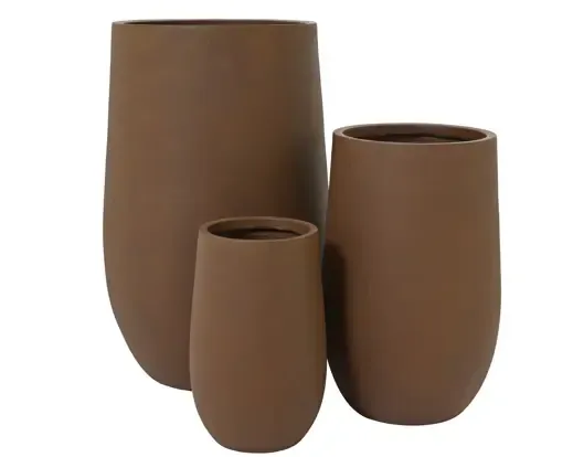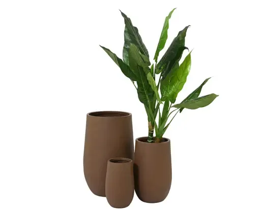 Maceta hecha de fibra de arcilla y polimagnesio de color marrón. Válida para interior o exterior. Medida 40cm alto x 25cm ancho