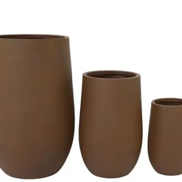 Maceta hecha de fibra de arcilla y polimagnesio de color marrón. Válida para interior o exterior. Medida 75cm alto x 48cm ancho