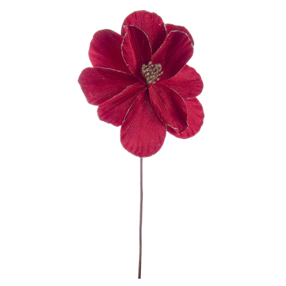 Flor artificial magnolia de color rojo. Medida 50cm altura x 26cm de diámetro