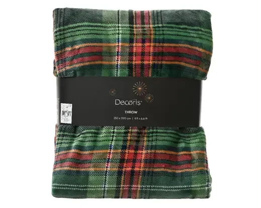 MANTA CUADROS VERDE/ROJA 200X150CM