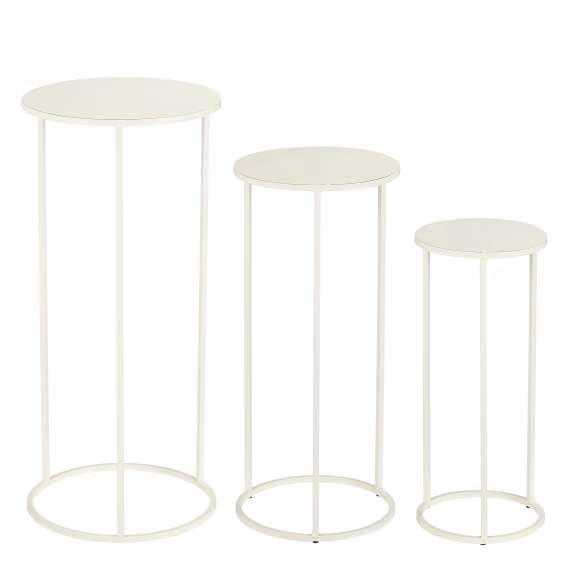 Mesita blanca de metal redondo. Altura 50cm x 22cm de diámetro. Válido de uso interior