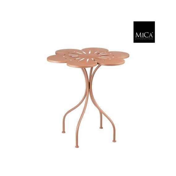 Mesa metal en forma de flor, en color tierra. Medida 72,5cm de altura x 70cm de diámetro