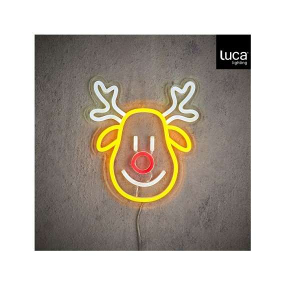 Neón reno amarillo. IP20. 90Led. Conexión USB. Válido uso interior. Medida 25,5x23x1,5cm