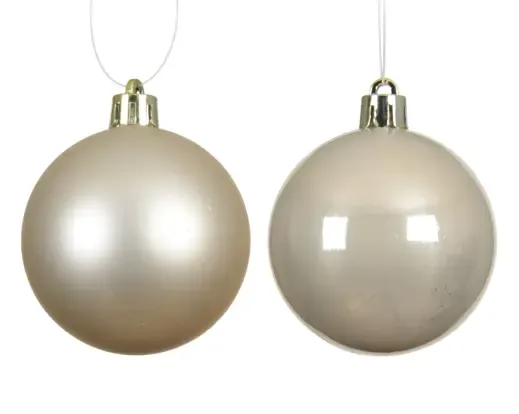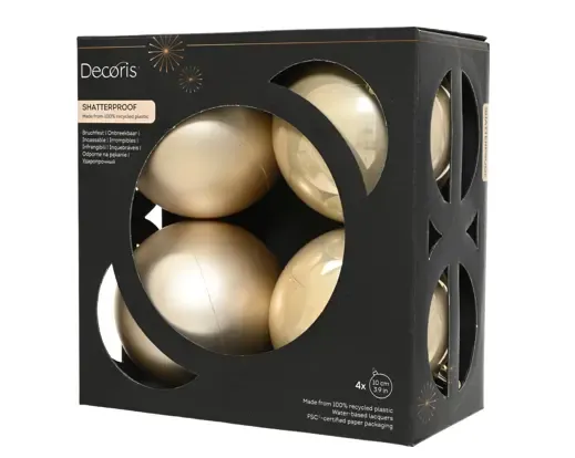 Pack 4 bolas de navidad plástica en color perla. Combina brillante y mate. 10cm de diámetro