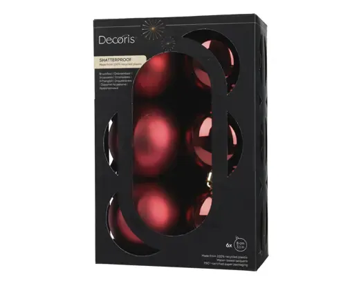 PACK 6 BOLAS NAVIDAD PLASTICAS OXBLOOD 8CM