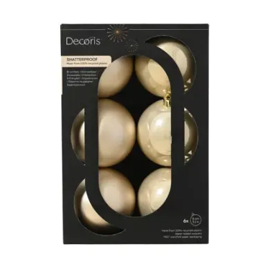 PACK 6 BOLAS NAVIDAD PLASTICAS PERLA 8CM
