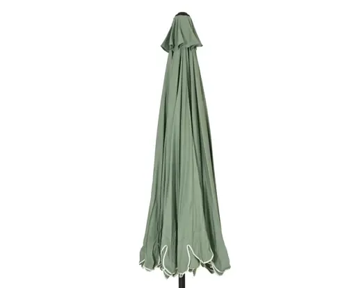 Parasol de poliéster de color verde. Altura 235cm x 270cm de diámetro