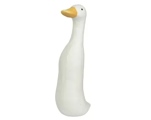 Pato decorativo hecho de fibra de vidrio, magnesio y piedra. Medida 35cm de altura x 13cm de ancho x 10cm de largo