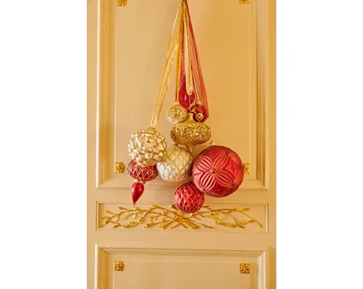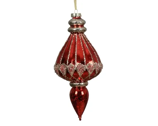 Figura colgante navideña. Hecha de plástico. Color rojo y dorado. Medida 29x12x12cm
