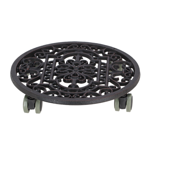 Plato de fundición redondo con ruedas. Medida 29,1cm d diámetro. Uso interior