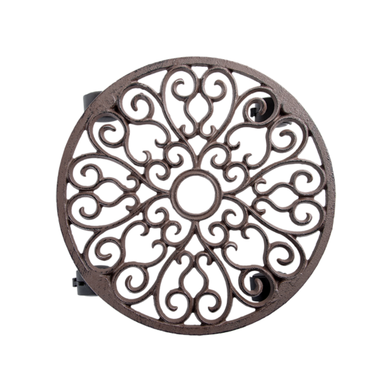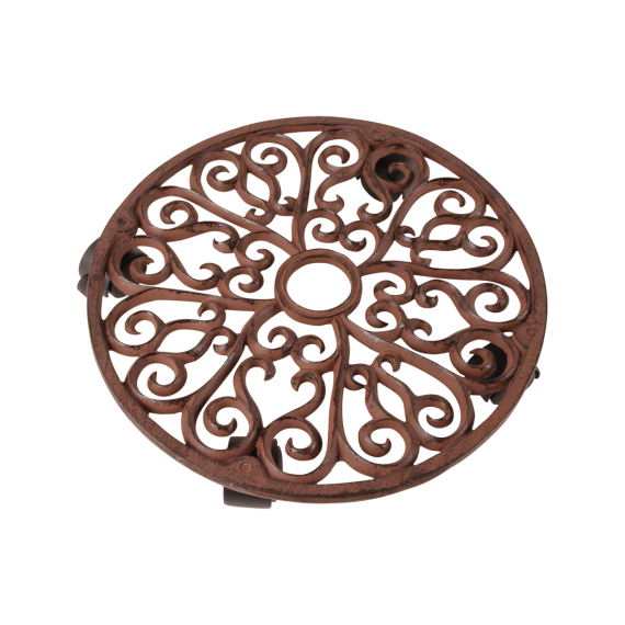 Plato de fundición redondo con ruedas. Medida 34,5cm de diámetro. Uso interior