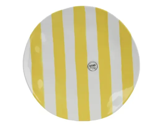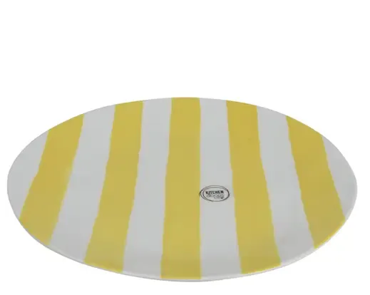 Plato melamina de rayas verticales en color amarillo. Medida 27,8cm de diámetro. Válido para lavavajillas. No apto para microondas