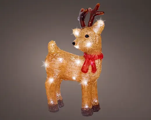 Reno navidad acrílico para uso exterior. Luz blanco frío. A pila AA. Medida 29,8x18x11,3cm