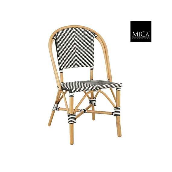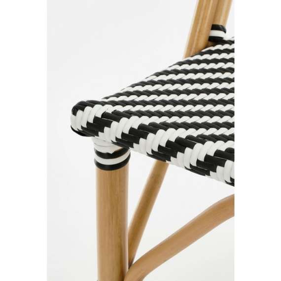 Esta silla bistro Mandox aporta el ambiente de un bistro francés a su espacio exterior. La silla bistro está hecha de ratán natural y material sintético trenzado. Esta combinación garantiza que la silla no sólo atraiga las miradas, sino que también sea resistente a la intemperie. Con su diseño clásico y su motivo trenzado en blanco y negro. La cómoda silla de bistro tiene una altura de asiento de 46,5 cm, una anchura de asiento de 45 cm, una profundidad de asiento de 45 cm y además mide L51 x A57 x A90 cm. El complemento ideal para cualquier jardín, balcón o terraza como silla de patio.