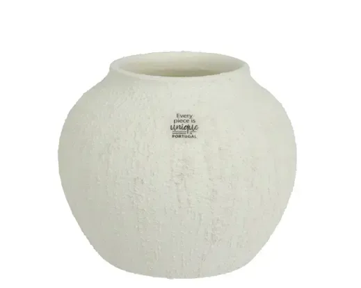 Jarrón terracota blanco finalizado rugoso con arena. Medida 16cm altura x 20cm de ancho