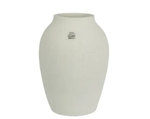 Jarrón vaso terracota hecho en Portugal. Acabado rugoso con arena. De color blanco. Medida 30cm altura x 21cm de diámetro