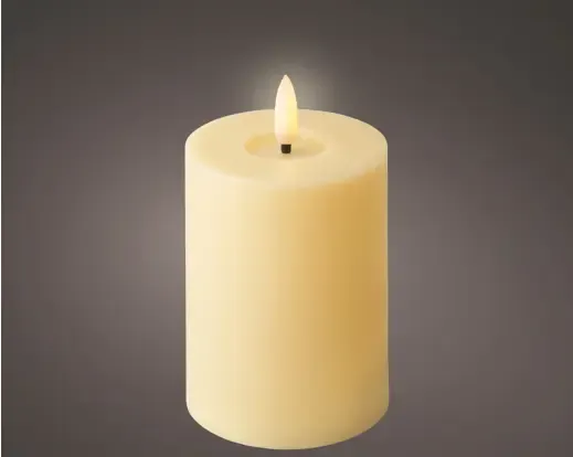 Vela led en color crema. Medida 12,3cm de altura x 7,5cm de diámetro. Válida uso exterior