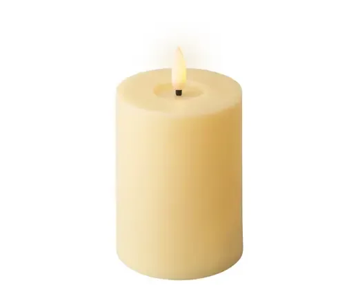 Vela led en color crema. Medida 17cm de altura x 7,5cm de diámetro. Válida uso exterior