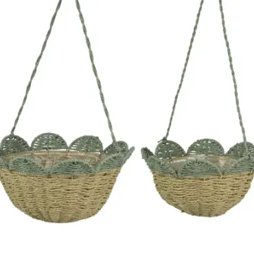 CESTO COLGANTE FLOR VERDE 30X15CM